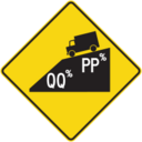 Le panneau «Pente raide descendante» (D-230-7) indique la présence d’une pente dont l’inclinaison est supérieure à 6%.