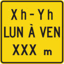 Le panonceau D-250-P, qui doit être installé sous le panneau D-250-2, indique la période pendant laquelle la prescription est en vigueur.