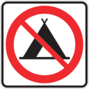 Le panneau « Interdiction de camper » indique qu’il est interdit de camper. Ce panneau est installé dans les parcs routiers.