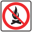 Le panneau « Interdiction de faire des feux de camp » indique qu’il est interdit de faire des feux de camp. Ce panneau est installé dans les parcs routiers.