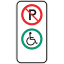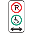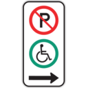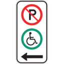 Le panneau « Stationnement réglementé pour personnes atteintes de déficience physique » (P-150-5-G-D) indique la zone où le stationnement public est autorisé ...