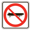 Enseigne d'interdiction de planche à roulettes (rouli-roulant / skateboard) signifiant que cette activité est interdite.