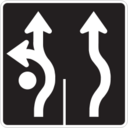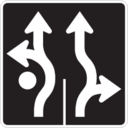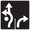 Le panneau « Direction des voies » (P-105-6) installé à l’approche d’un carrefour giratoire à voies multiples indique à l’usager de la route qu’il doit se ...