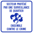 Panneau de signalisation d’indication, surveillance, secteur protégé par une surveillance de quartier , ensemble contre le crime, avec pictogramme standardisé.