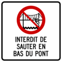 Panneau de signalisation d’indication, interdit de sauter en bas du pont, avec pictogramme standardisé.