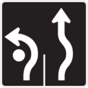 Le panneau « Direction des voies » (P-105-2) installé à l’approche d’un carrefour giratoire à voies multiples indique à l’usager de la route qu’il doit se ...